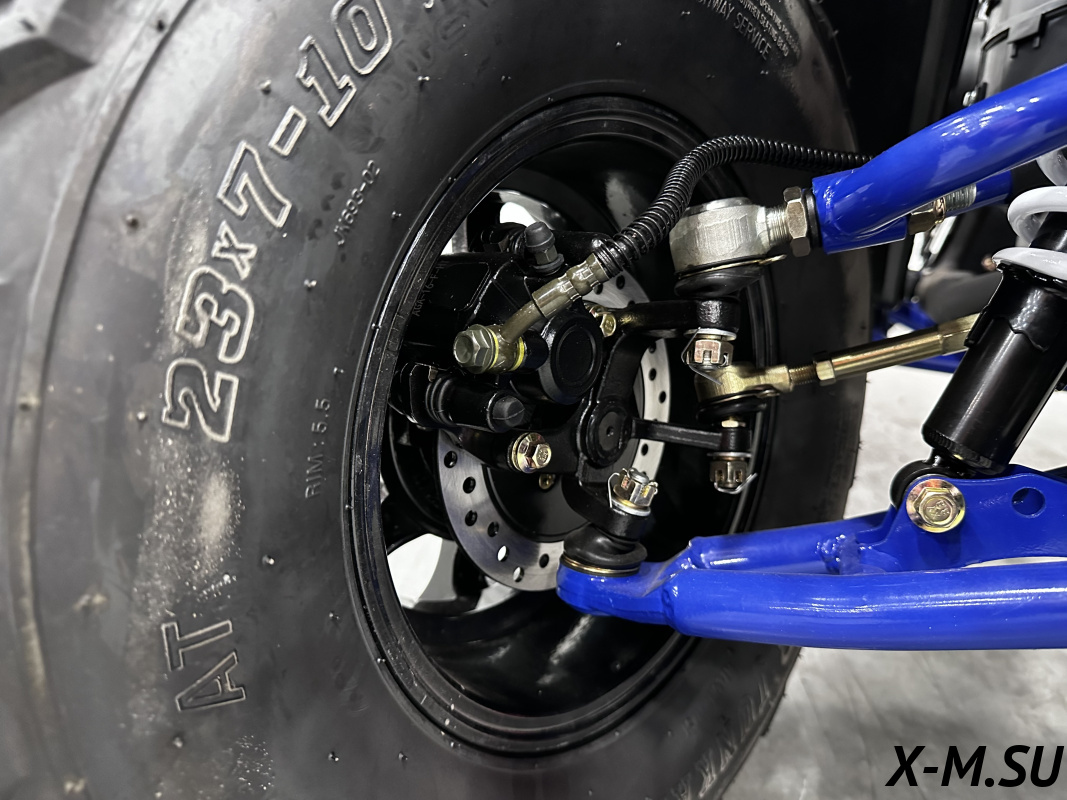 Гидравлическая тормозная система, замкнутая в общий контур, который равномерно распределяет нагрузку на все колёса, с вентилируемыми тормозными дисками Nippon (Hitachi) отвечают за эффективное торможение. Регулировка хода курка газа – если вы учите своего ребенка общению с техникой.