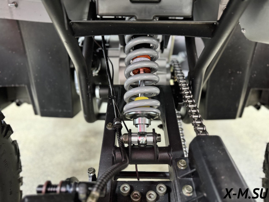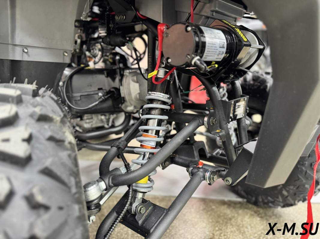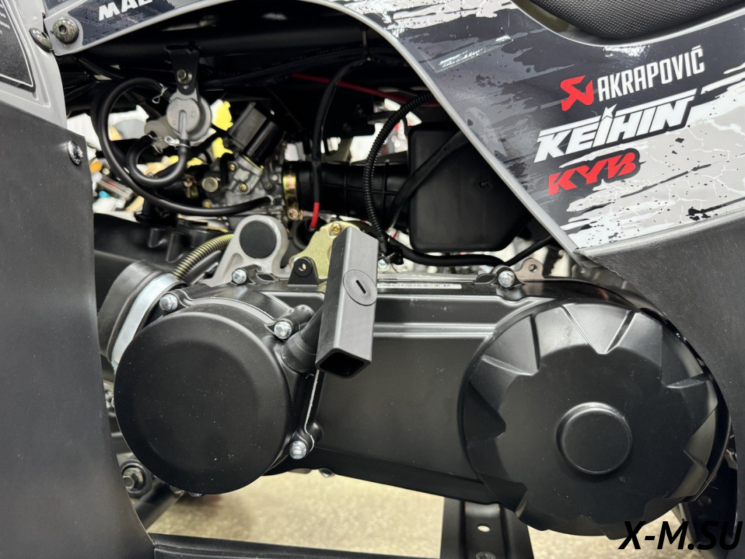 Внутри квадроцикла надежно спрятан одноцилиндровый четырехтактный двигатель с балансировочным валом ZONSHENG с сохранением охлаждающей мощности 19 л.с. с электрозапуском, а также герметичная электрическая система на базе японских комплектующих и аккумулятор повышенной емкости.
