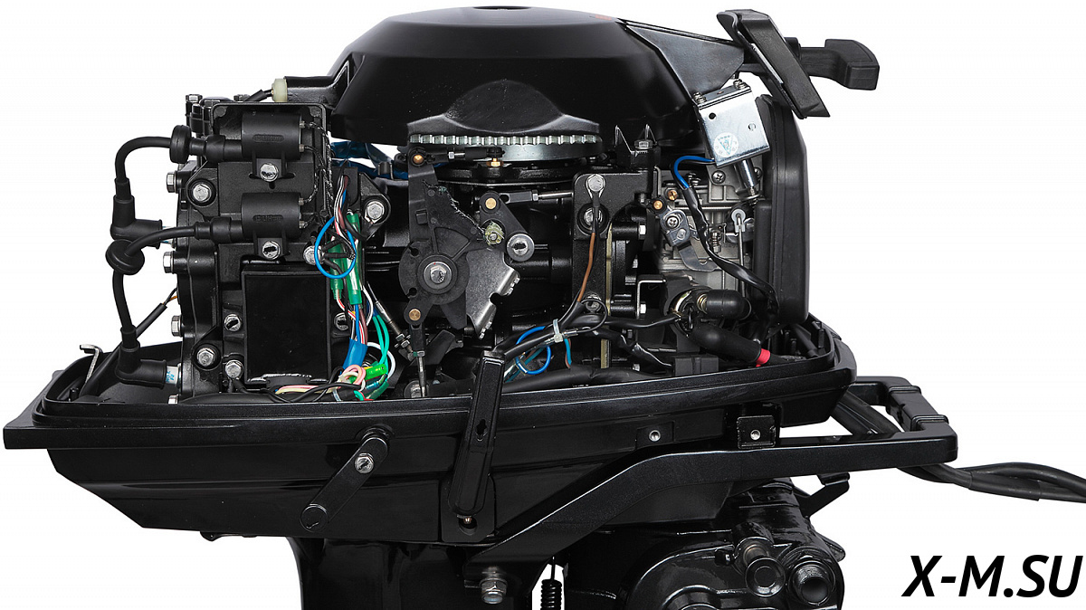 MP 40 AERTL: Лодочный мотор Marlin Outboards, двухтактный, 40 лошадиных сил, электрический запуск двигателя, дистанционное управление, гидропривод, длинная нога (дейдвуд).