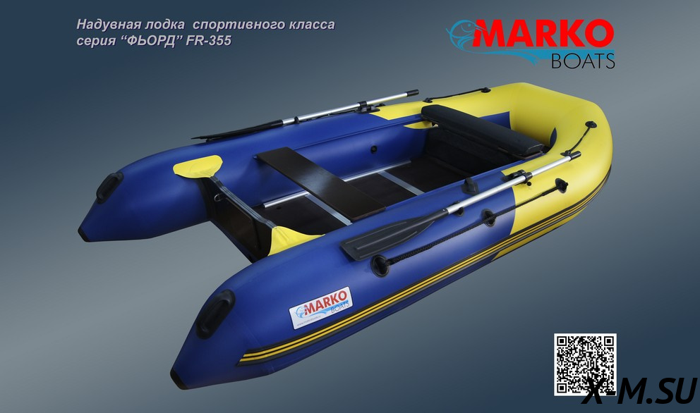 Надувная лодка «ФЬОРД» FR-355 оснащена стационарным транцем толщиной 27 мм, имеющим высоту 390 мм (стандарт), на который можно установить мотор мощностью до 25 л.с.. На транце прикручены защитные пластиковая и фанерная накладки под мотор. Кроме того, как и на всех моделях моторных лодок, производимых компанией «Марко Ботс», сверху транец защищен специальным ПВХ профилем, что обеспечивает его сохранность долгие годы. Транец вклеен в корпус лодки при помощи специальных держателей из ПВХ - трансхолдеров. Корпус лодки разделен на три отсека. Боковая поверхность баллона защищена боковым ПВХ профилем с брызгоотбойником. Вклеиваемый надувной киль является дополнительным четвертым отсеком и придает лодке курсовую устойчивость. Есть сливной клапан. Лодка комплектуется жестким вставным разборным дном, изготовленным из влагостойкой фанеры с противоскользящим покрытием толщиной 12 мм., оснащенной поперечными алюминиевыми профилями "папа-мама". Продольную жесткость пайол придают алюминиевые стрингеры, поставляемые в комплекте. Лавки (банки) выполнены из ламинированной влагостойкой фанеры толщиной 18 мм, размер лавок 880х220 мм., крепятся к бортам лодки с помощью системы "ликтрос-ликпаз", позволяющей выбрать наиболее удобное положение и, при необходимости, быстро поменять положение лавок. На носу лодки и на конусах баллонов для удобства переноски собранной лодки вдвоем установлены ручки ПВХ. В базовой комплектации уже установлена защита надувного киля, защита транца снизу и защита баллонов в кормовой части. Для транспортировки используются удобные транспортировочные сумки: одна для корпуса лодки, другая для разборного днища и лавок. Весла и стрингеры транспортируются в отдельном чехле. Транспортировочные сумки шьются из ткани Oxford 600D с ПВХ пропиткой.