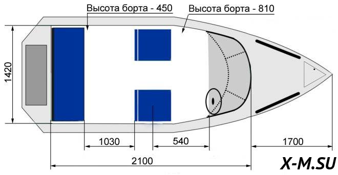 Высота борта на миделе от ОП - 0,87 м