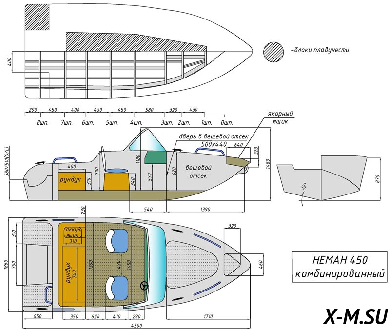 Масса лодки с оборудованием и снаряжением без мотора и запаса топлива - 300 кг