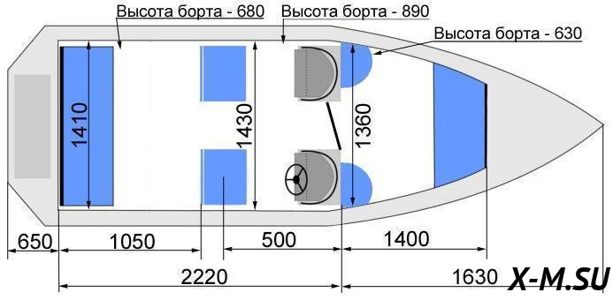 Высота борта на миделе от ОП - 0,87 м