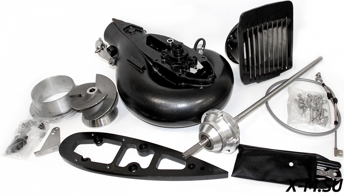 Включает в себя все необходимые детали и инструкцию по сборке. Насадка водомёта подсоединяется к подвесному водомету вместо винта и редуктора в сборе. Для монтажа используются только ручные инструменты и не требуются особые навыки.